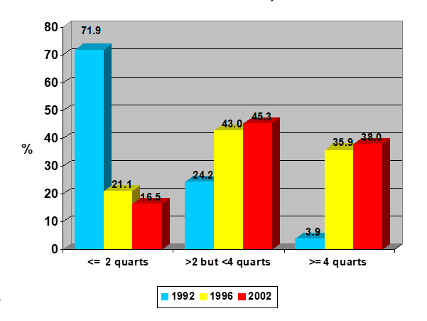 The second question asked of producers was how much colostrum is normally fed to those calves that are fed by hand. Common recommendations in the past were to feed calves 2 quarts of colostrum twice during the first 24 hours after birth, usually at less than 4 hours and about 12 hours. In the days of very high quality colostrum, this (1 gallon or about 3.9 liters) would have been sufficient. However, several studies have suggested that this method of feeding – particularly to Holstein calves – can result in inadequate transfer of immunity. Therefore, many dairy professionals are recommending that calves should be fed greater amounts of colostrum to minimize the risk of failure of passive transfer. Apparently, the message is getting out! Many more producers are feeding greater amounts of colostrum, which SHOULD improve passive transfer. However, there are many other factors that contribute to passive immunity. Feeding more colostrum may help, but it’s not the “silver bullet” to ensuring healthy calves.