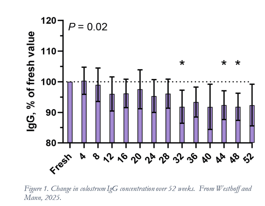 A study published in Journal of Dairy Science Communications (Westhoff and Mann, 2025) reported a study conducted in 2023 and 2024 do better understand the effects of long-term storage on colostral IgG concentration.